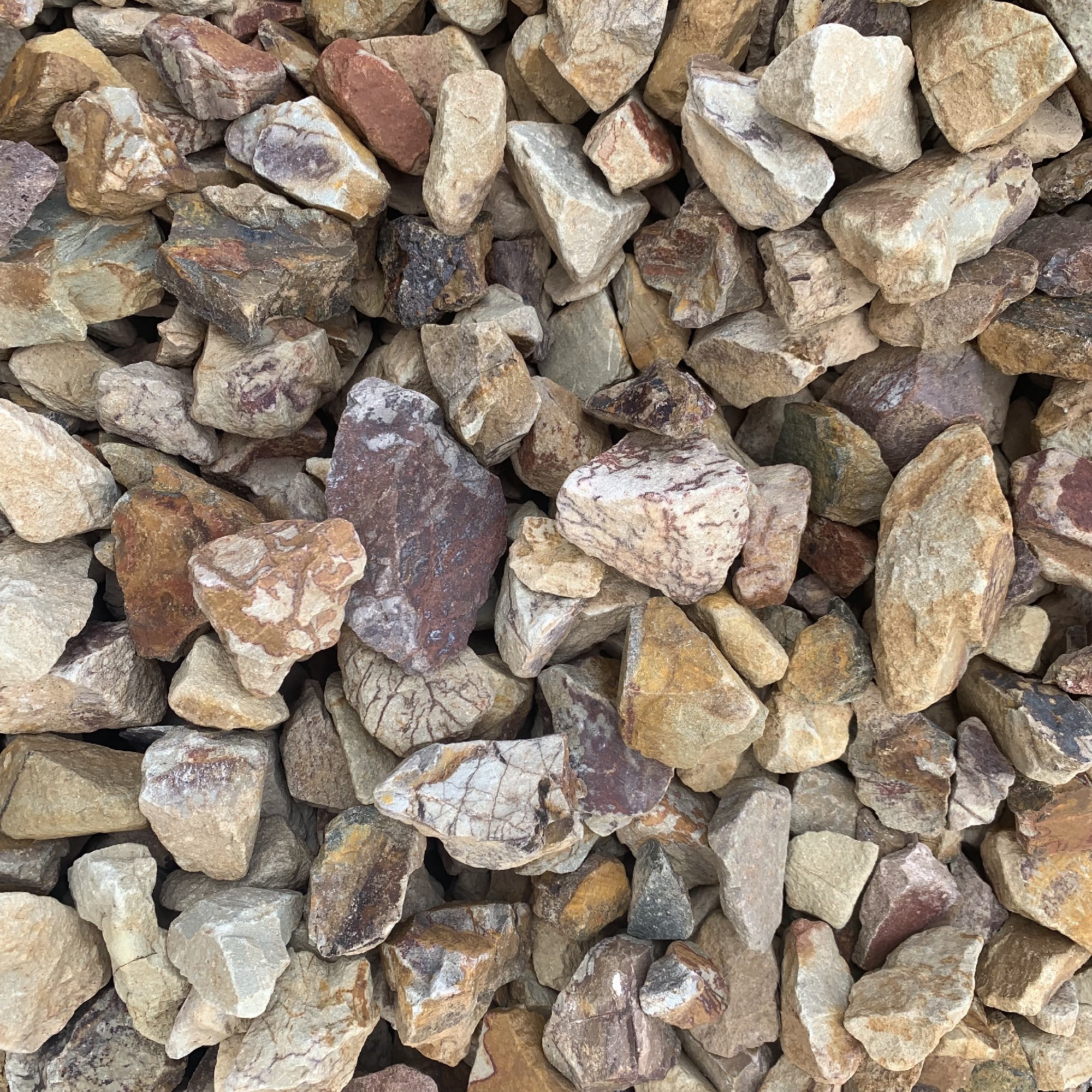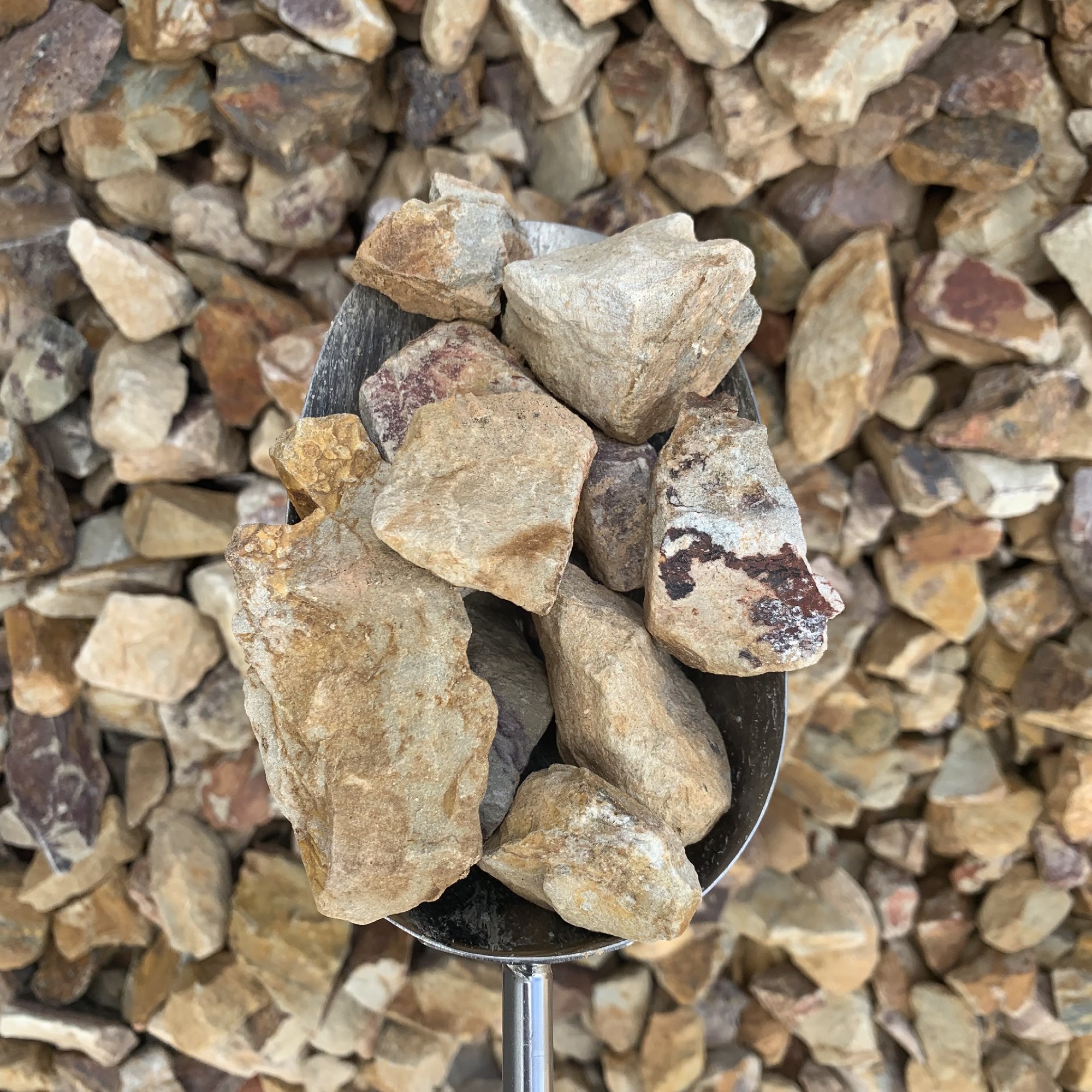 Our 40mm Tuscan Stones are made from sandstone and have a unique earthy colour. They are not rounded and have a more sharp/angular appearance. These stones are an easy way to enhance your garden and home. It is suitable to use as an in-organic mulch in garden beds. This product does not compact, meaning it provides good drainage.